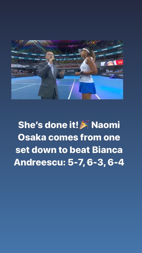 Osaka v Andreescu – Live blog (Instagram Stories)